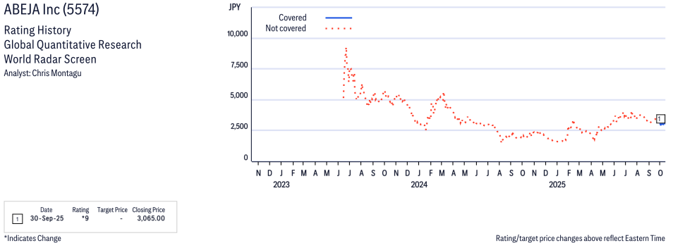ABEJA Inc ( 5574 ) Disclosure / Price Chart(s)