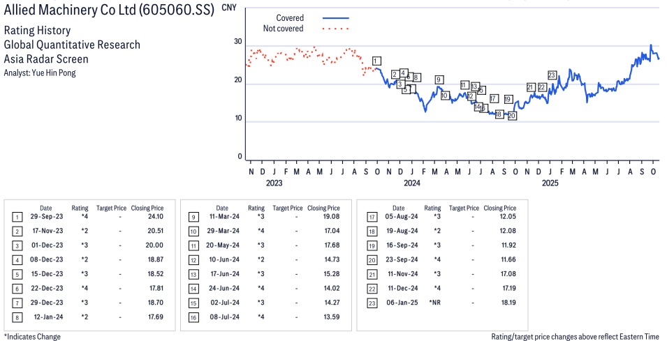 Allied Machinery Co Ltd ( 605060.SS ) Disclosure / Price Chart(s)