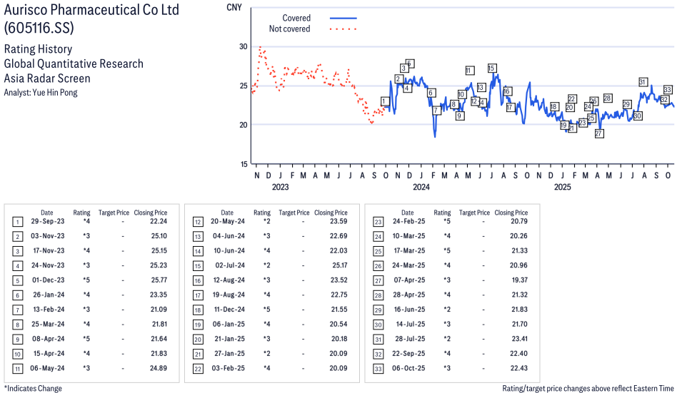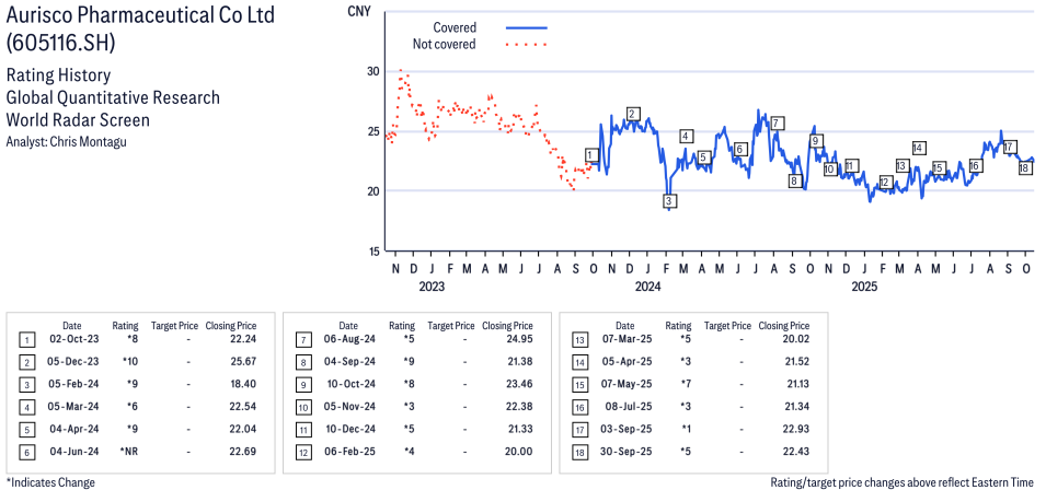 Aurisco Pharmaceutical Co Ltd ( 605116.SS ) Disclosure / Price Chart(s)