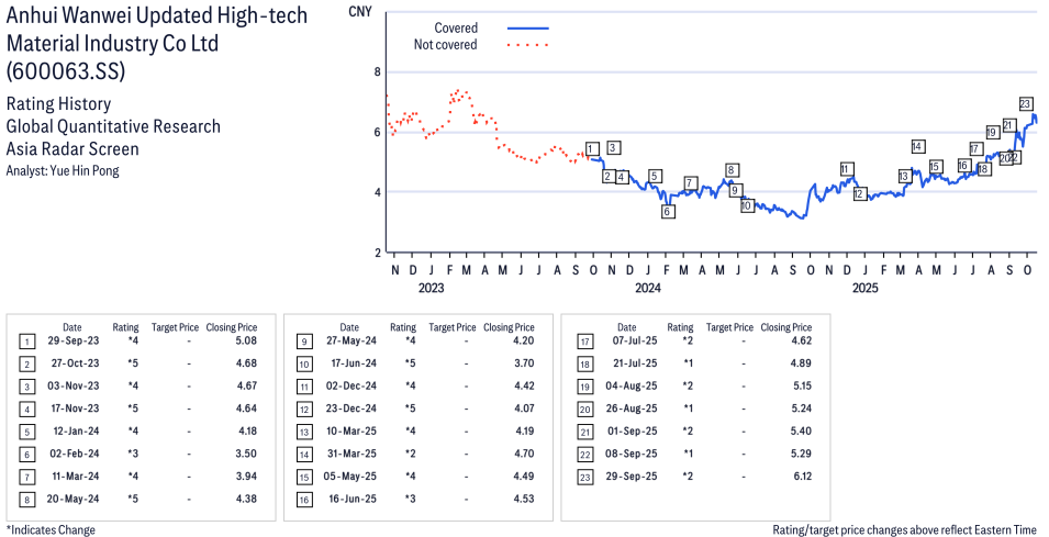 Anhui Wanwei Updated High-tech Material Industry Co Ltd ( 600063.SS ) Disclosure / Price Chart(s)