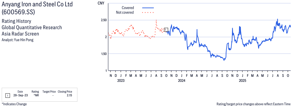 Anyang Iron and Steel Co Ltd ( 600569.SS ) Disclosure / Price Chart(s)