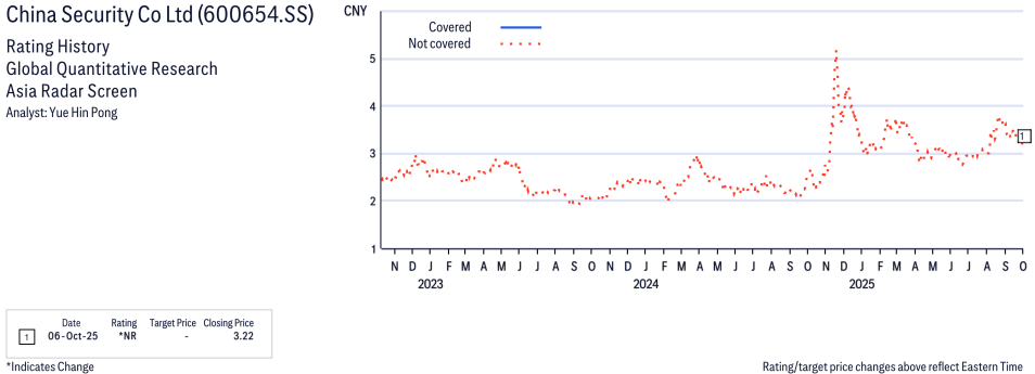 China Security Co Ltd ( 600654.SS ) Disclosure / Price Chart(s)