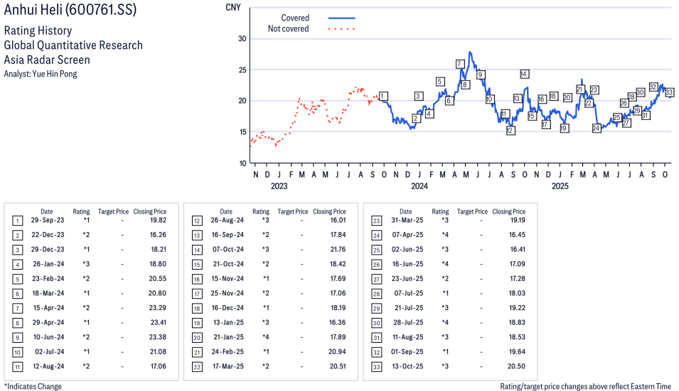 Anhui Heli ( 600761.SS ) Disclosure / Price Chart(s) / Valuation & Risk
