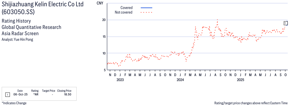 Shijiazhuang Kelin Electric Co Ltd ( 603050.SS ) Disclosure / Price Chart(s)