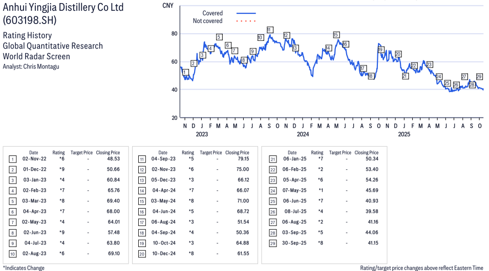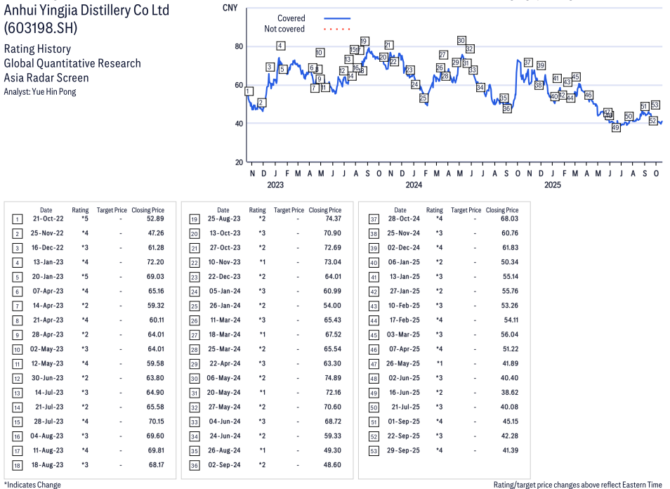 Anhui Yingjia Distillery Co Ltd ( 603198.SS ) Disclosure / Price Chart(s)
