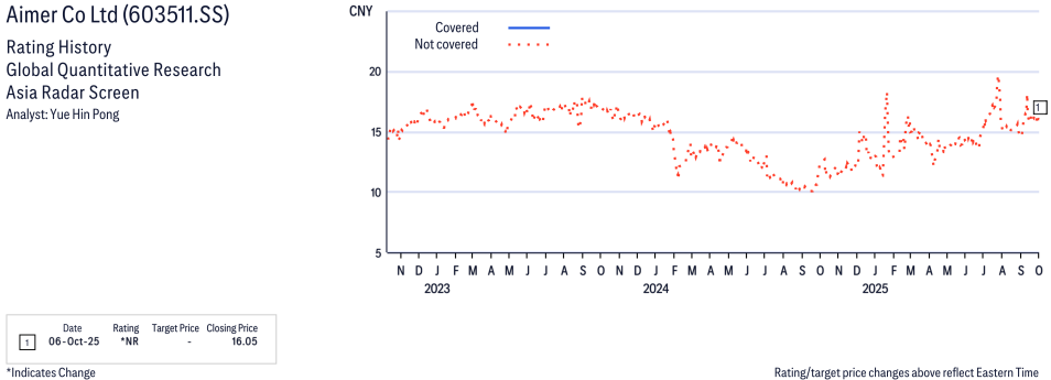 Aimer Co Ltd ( 603511.SS ) Disclosure / Price Chart(s)