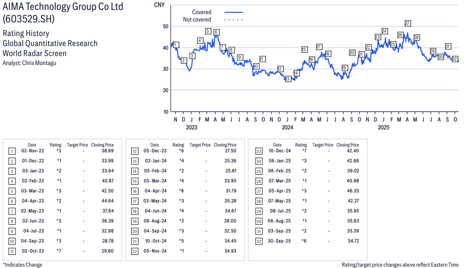 AIMA Technology ( 603529.SS ) Disclosure / Price Chart(s) / Valuation & Risk
