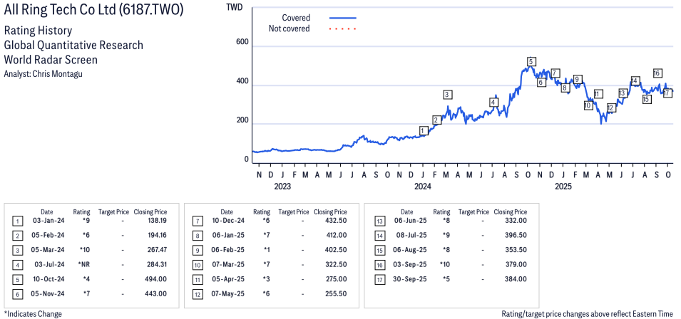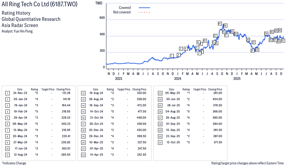 All Ring Tech Co Ltd ( 6187.TWO ) Disclosure / Price Chart(s)