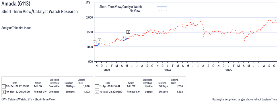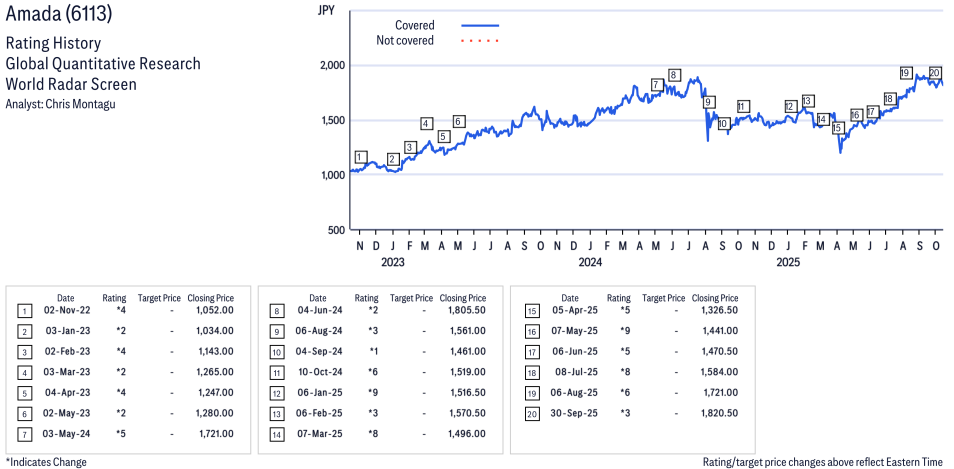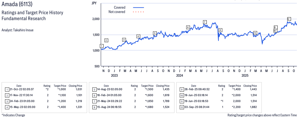 Amada ( 6113 ) Disclosure / Price Chart(s) / Valuation & Risk