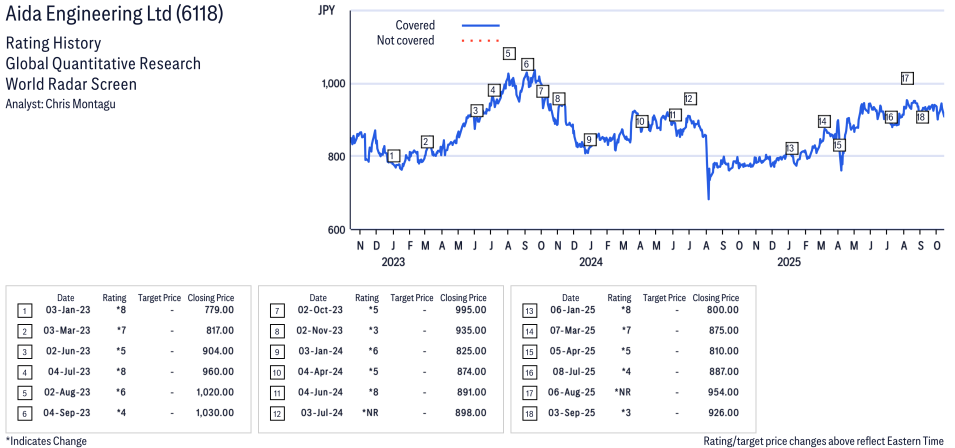Aida Engineering Ltd ( 6118 ) Disclosure / Price Chart(s)