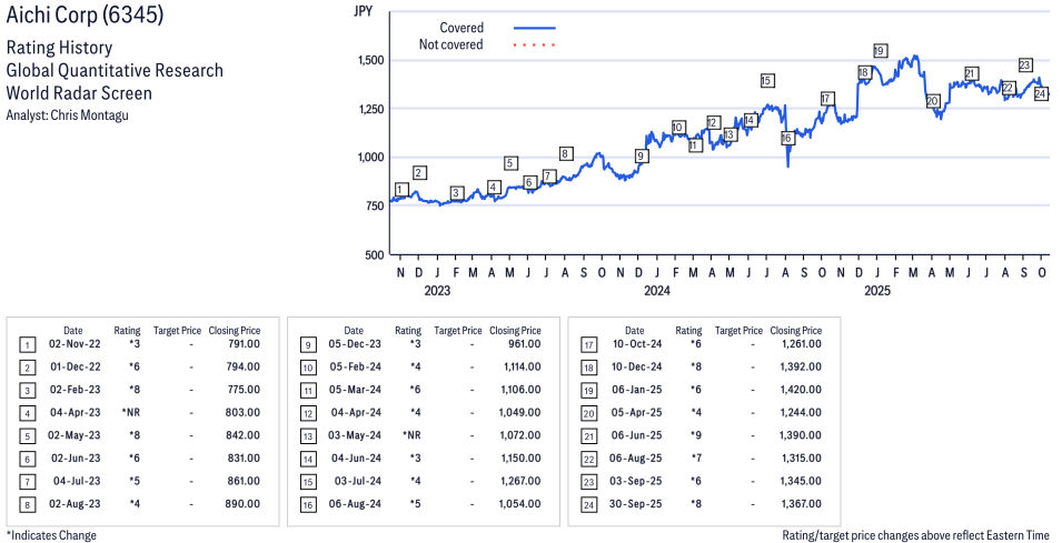 Aichi Corp ( 6345 ) Disclosure / Price Chart(s)