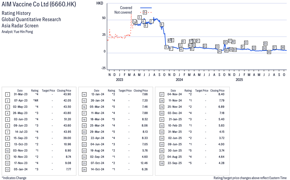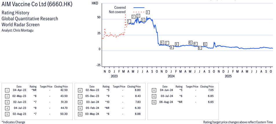 AIM Vaccine Co Ltd ( 6660.HK ) Disclosure / Price Chart(s)