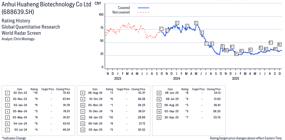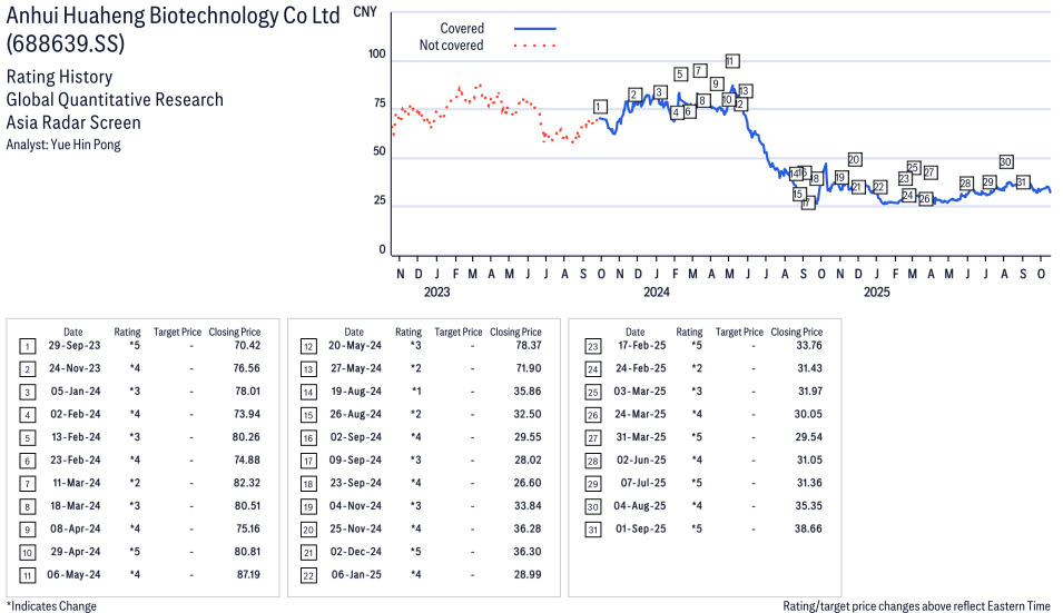 Anhui Huaheng Biotechnology Co Ltd ( 688639.SS ) Disclosure / Price Chart(s)