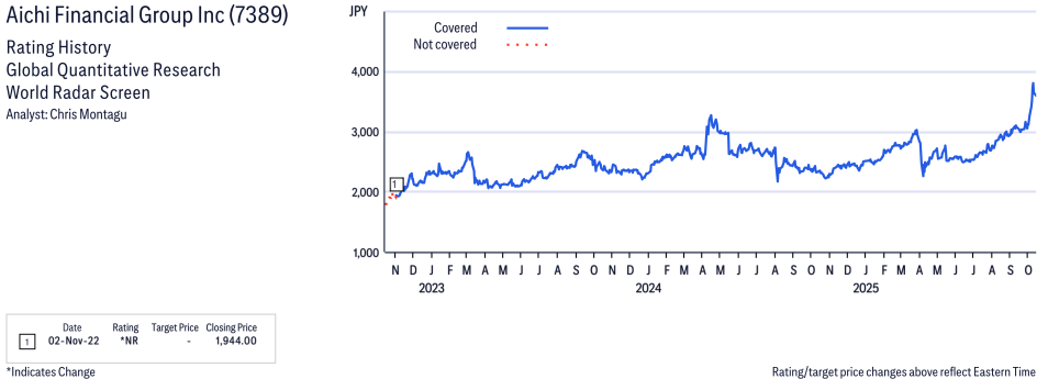 Aichi Financial Group Inc ( 7389 ) Disclosure / Price Chart(s)
