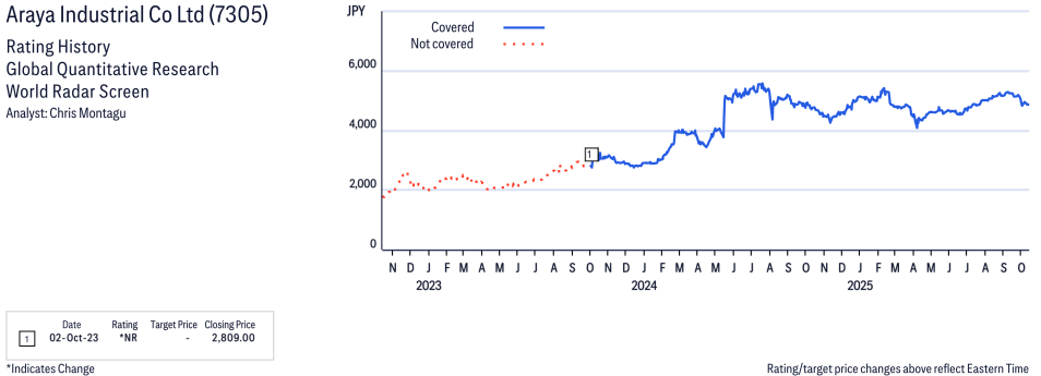 Araya Industrial Co Ltd ( 7305 ) Disclosure / Price Chart(s)