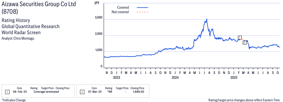 Aizawa Securities Group Co Ltd ( 8708 ) Disclosure / Price Chart(s)