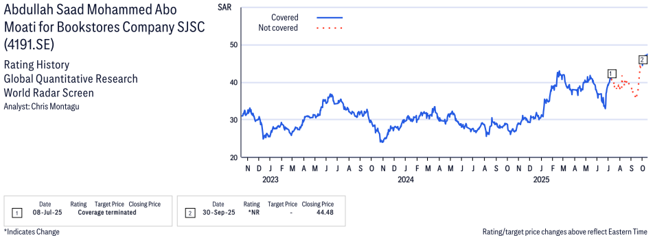 Abdullah Saad Mohammed Abo Moati for Bookstores Company SJSC ( 9500.SE ) Disclosure / Price Chart(s)