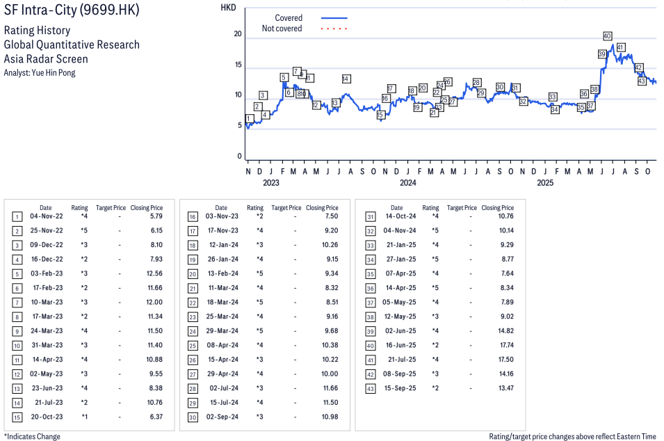 SF Intra-City ( 9699.HK ) Disclosure / Price Chart(s) / Valuation & Risk