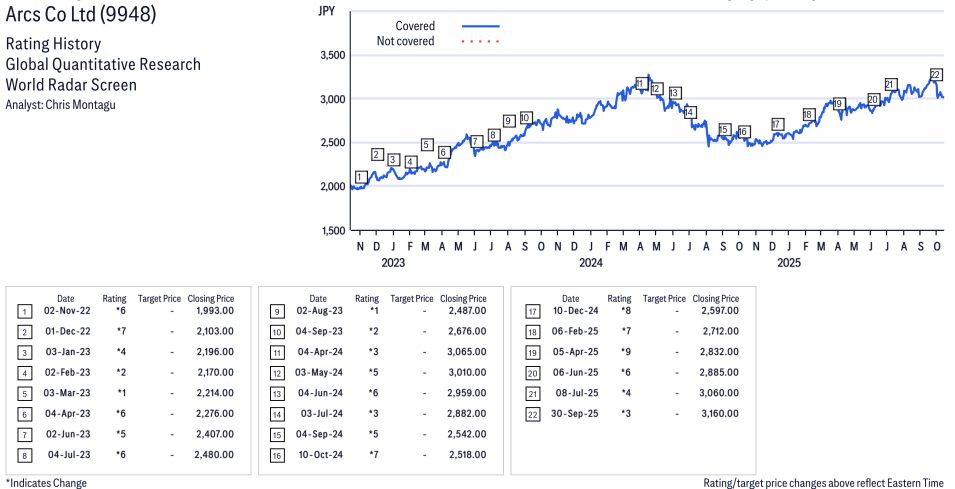 Arcs Co Ltd ( 9948 ) Disclosure / Price Chart(s)