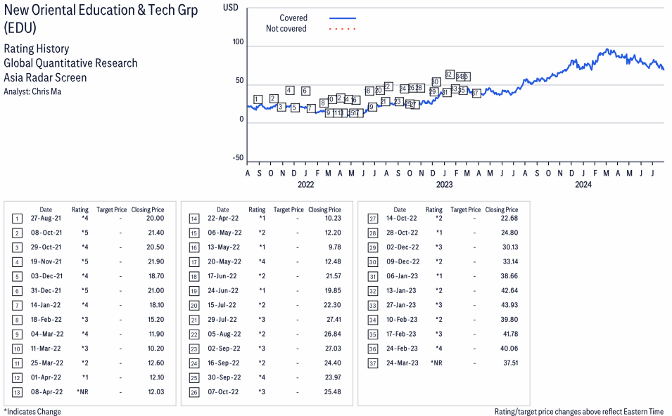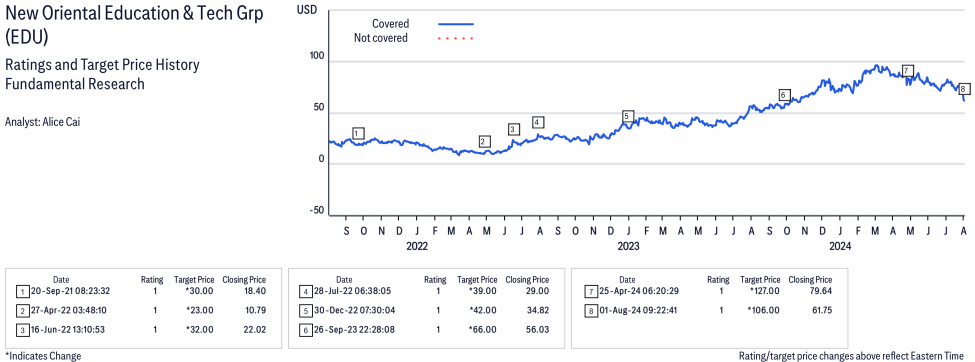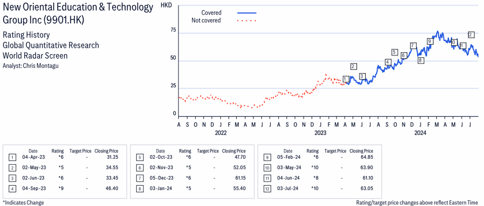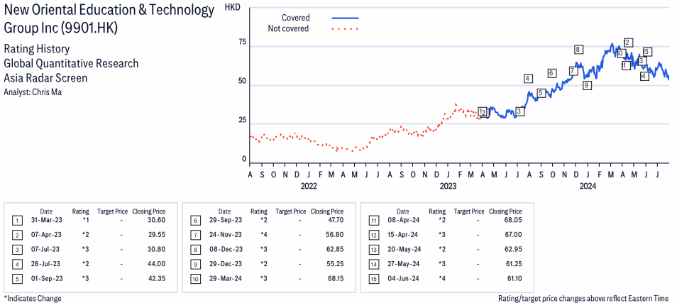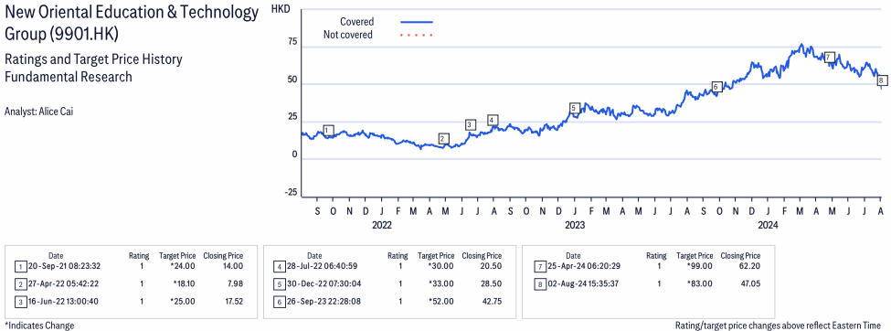 New Oriental Education & Tech Grp ( 9901.HK ) Disclosure / Price Chart(s) / Valuation & Risk