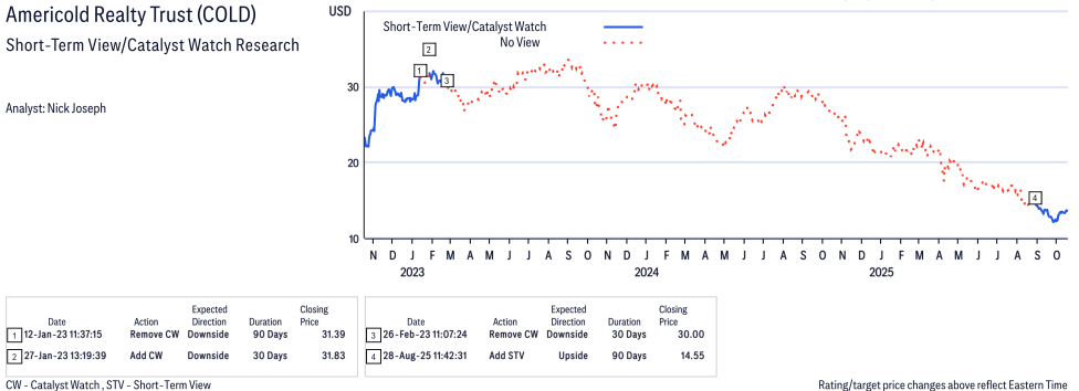 Americold Realty Trust ( COLD ) Disclosure / Price Chart(s) / Valuation & Risk