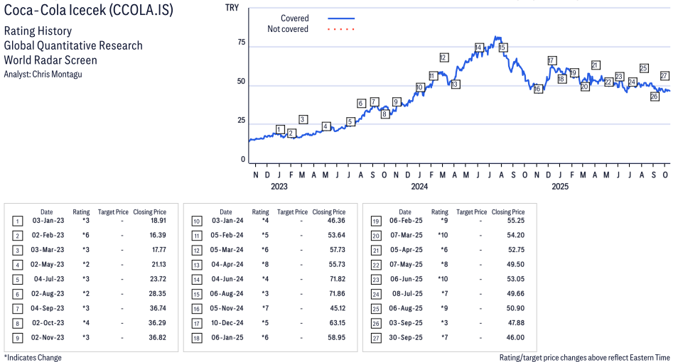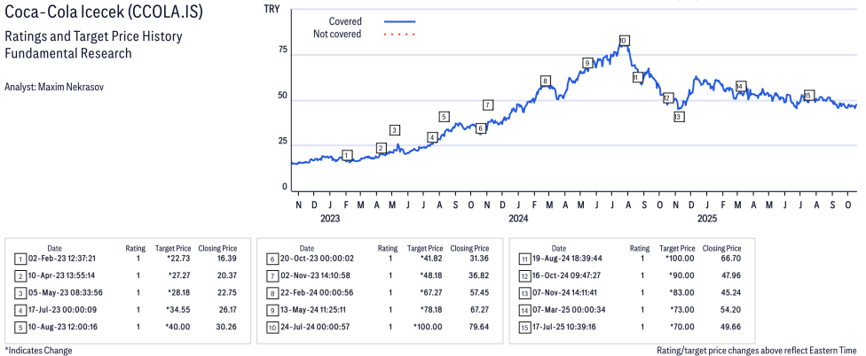 Coca-Cola Icecek ( CCOLA.IS ) Disclosure / Price Chart(s) / Valuation & Risk