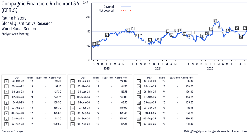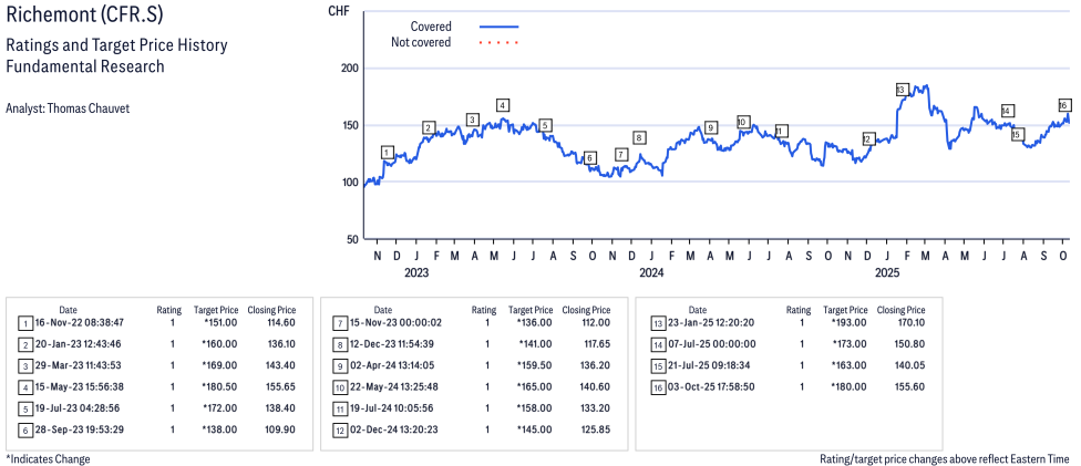 Richemont ( CFR.S ) Disclosure / Price Chart(s) / Valuation & Risk