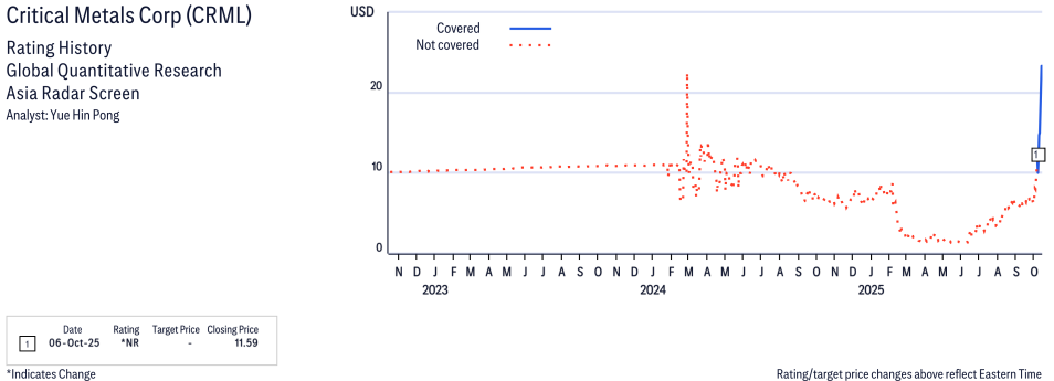 Critical Metals Corp ( CRML.OQ ) Disclosure / Price Chart(s)