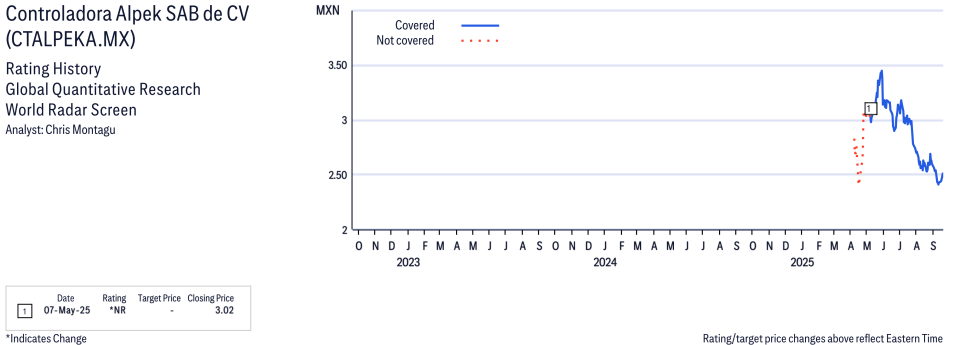 Controladora Alpek SAB de CV ( CTALPEKA.MX ) Disclosure / Price Chart(s)