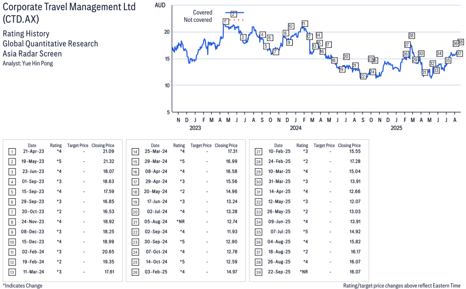 Corporate Travel Management Ltd ( CTD.AX ) Disclosure / Price Chart(s) / Valuation & Risk