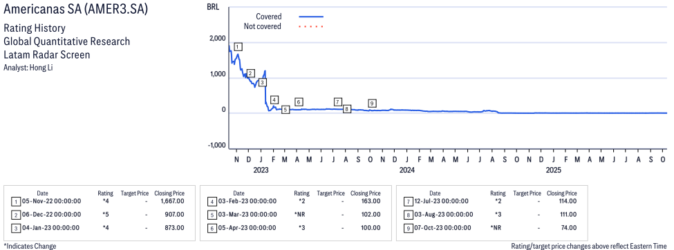 Americanas SA ( AMER3.SA ) Disclosure / Price Chart(s)