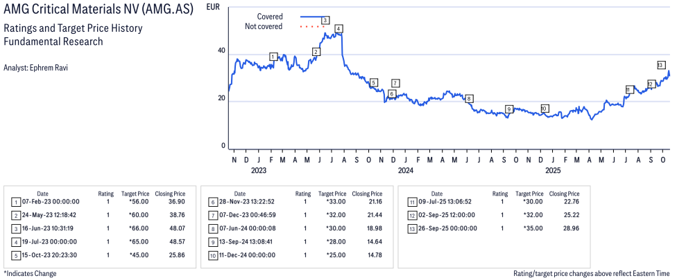 AMG Critical Materials NV ( AMG.AS ) Disclosure / Price Chart(s) / Valuation & Risk