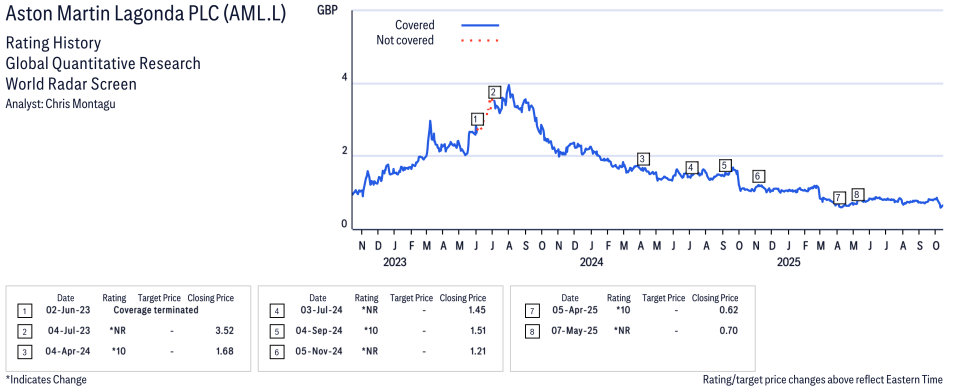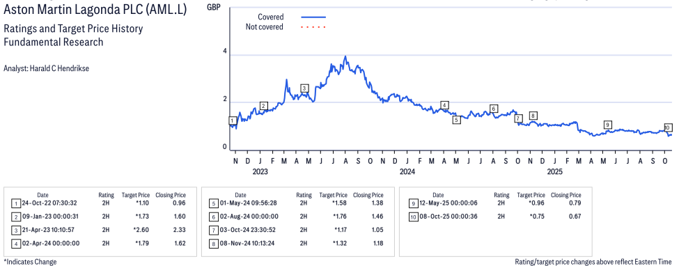 Aston Martin Lagonda PLC ( AML.L ) Disclosure / Price Chart(s) / Valuation & Risk