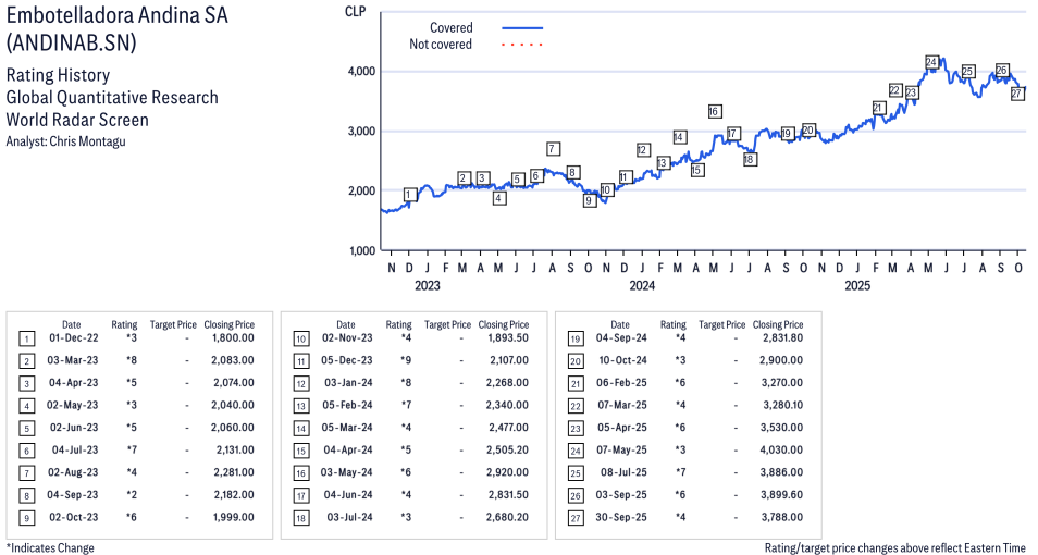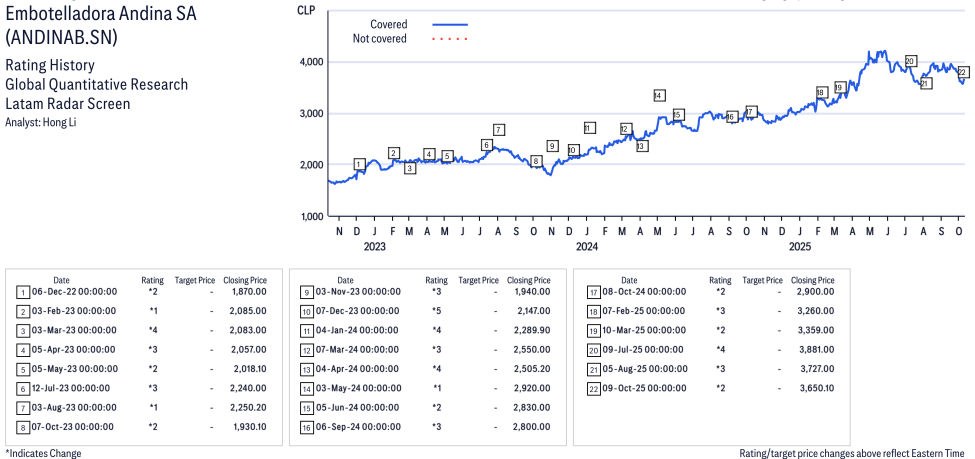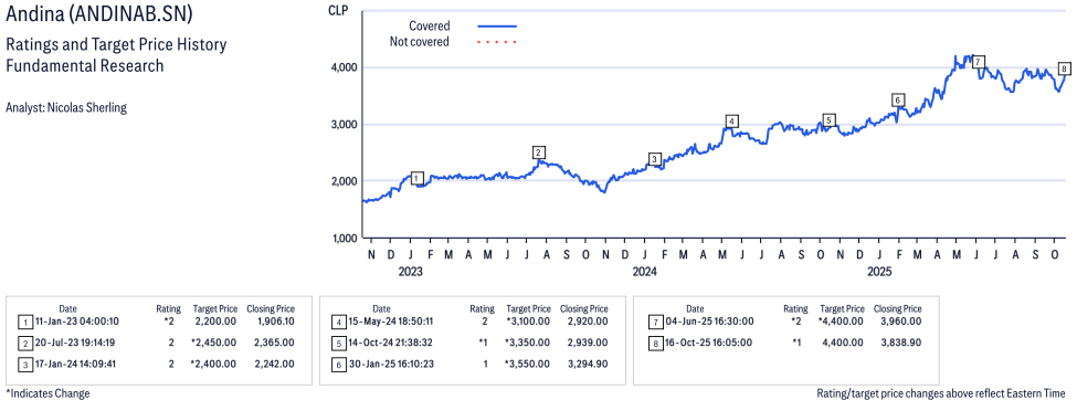 Andina ( ANDINAB.SN ) Disclosure / Price Chart(s) / Valuation & Risk