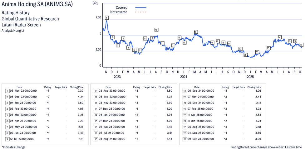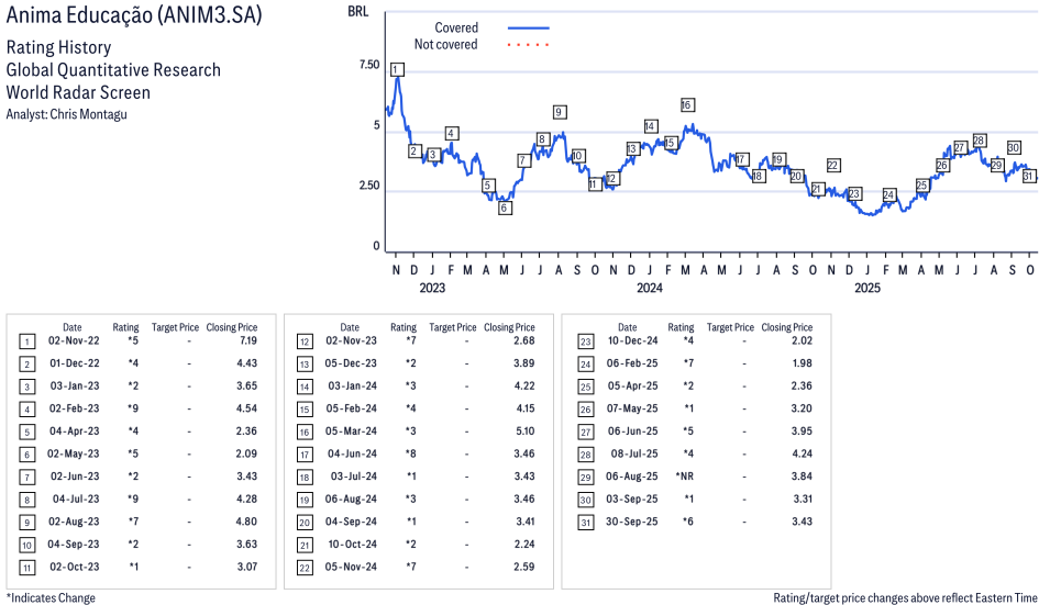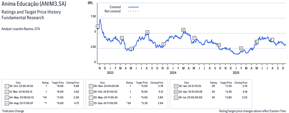 Anima Educação ( ANIM3.SA ) Disclosure / Price Chart(s) / Valuation & Risk