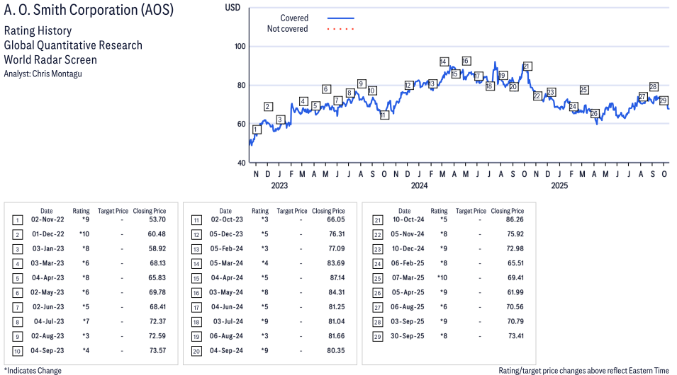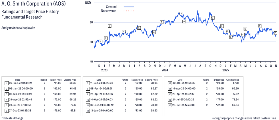 A. O. Smith Corporation ( AOS ) Disclosure / Price Chart(s) / Valuation & Risk