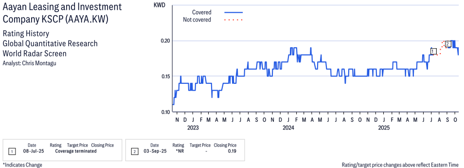 Aayan Leasing and Investment Company KSCP ( AAYA.KW ) Disclosure / Price Chart(s)