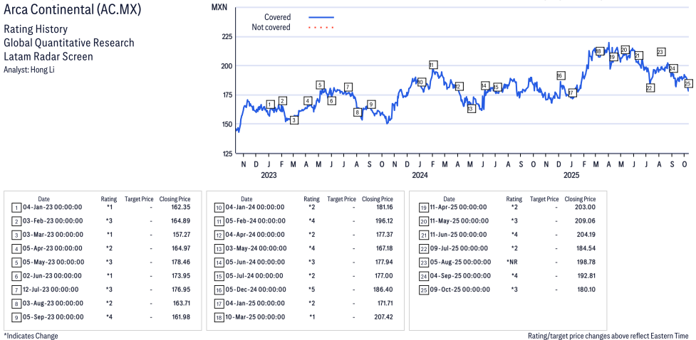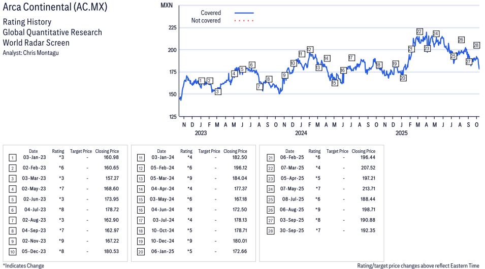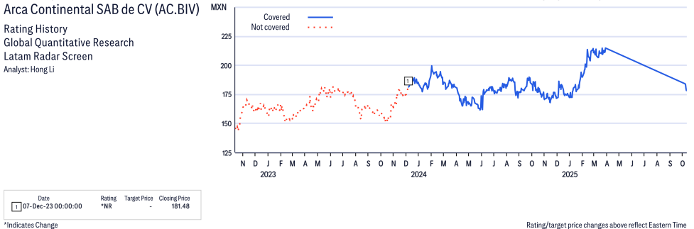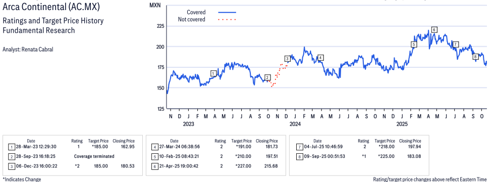 Arca Continental ( AC.MX ) Disclosure / Price Chart(s) / Valuation & Risk