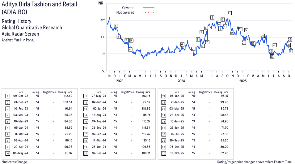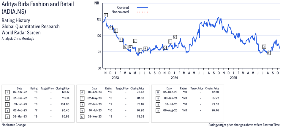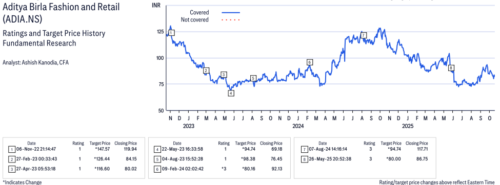 Aditya Birla Fashion and Retail ( ADIA.NS ) Disclosure / Price Chart(s) / Valuation & Risk