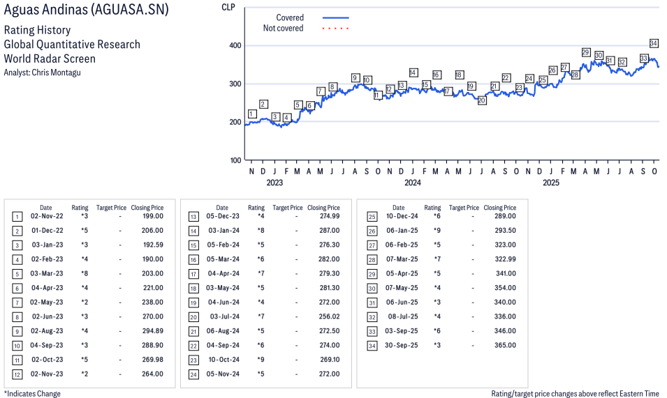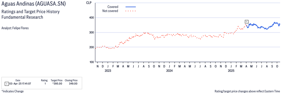 Aguas Andinas ( AGUASA.SN ) Disclosure / Price Chart(s) / Valuation & Risk
