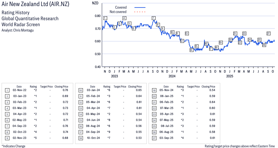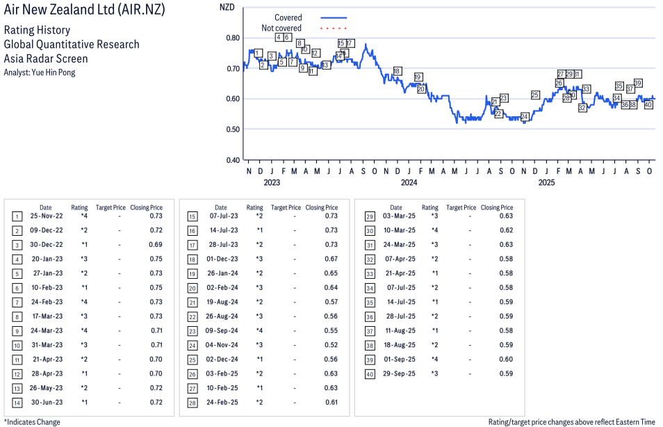Air New Zealand Ltd ( AIR.NZ ) Disclosure / Price Chart(s)