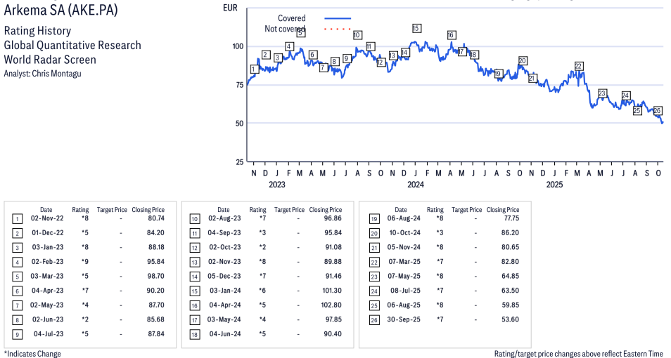Arkema ( AKE.PA ) Disclosure / Price Chart(s) / Valuation & Risk