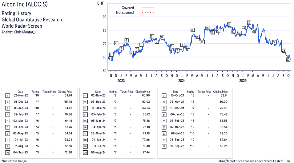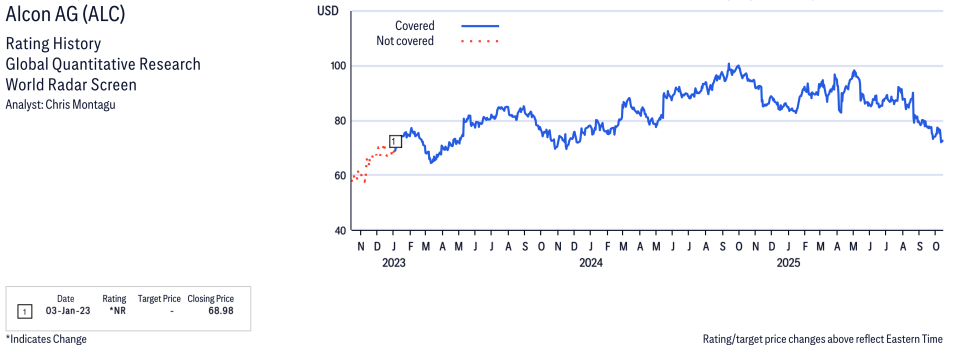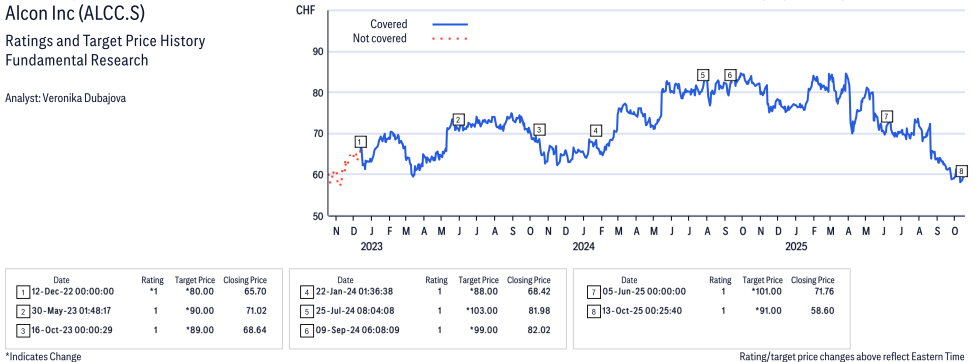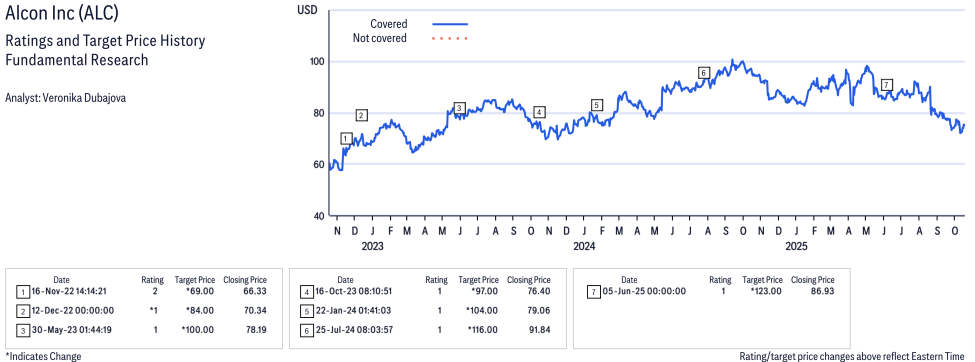 Alcon Inc ( ALCC.S ) Disclosure / Price Chart(s) / Valuation & Risk