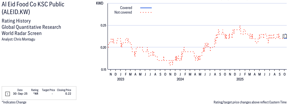 Al Eid Food Co KSC Public ( ALEID.KW ) Disclosure / Price Chart(s)