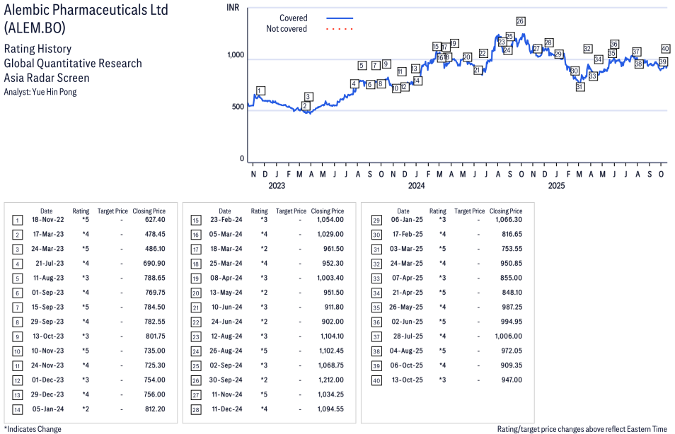 Alembic Pharmaceuticals Ltd ( ALEM.NS ) Disclosure / Price Chart(s)