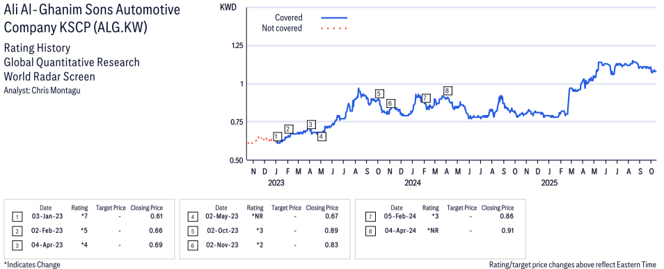 Ali Al-Ghanim Sons Automotive Company KSCP ( ALG.KW ) Disclosure / Price Chart(s)