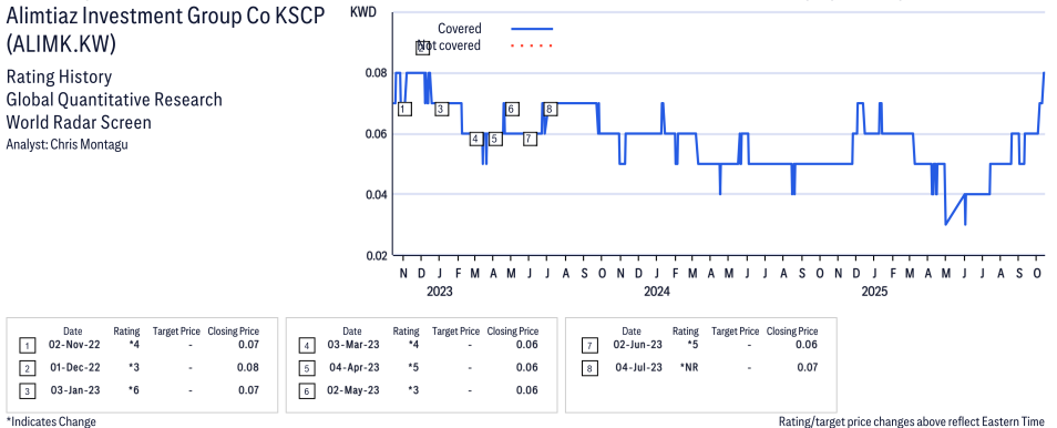 Alimtiaz Investment Group Co KSCP ( ALIMK.KW ) Disclosure / Price Chart(s)