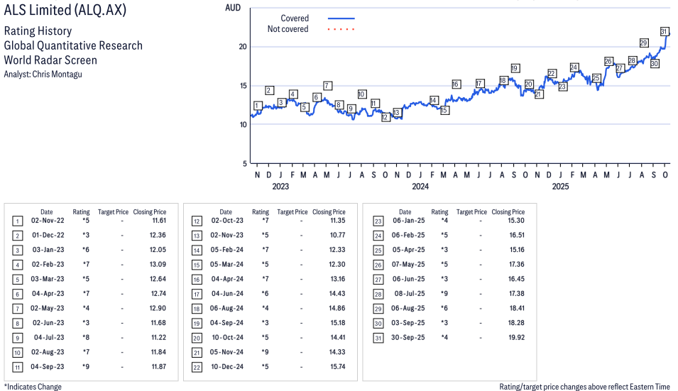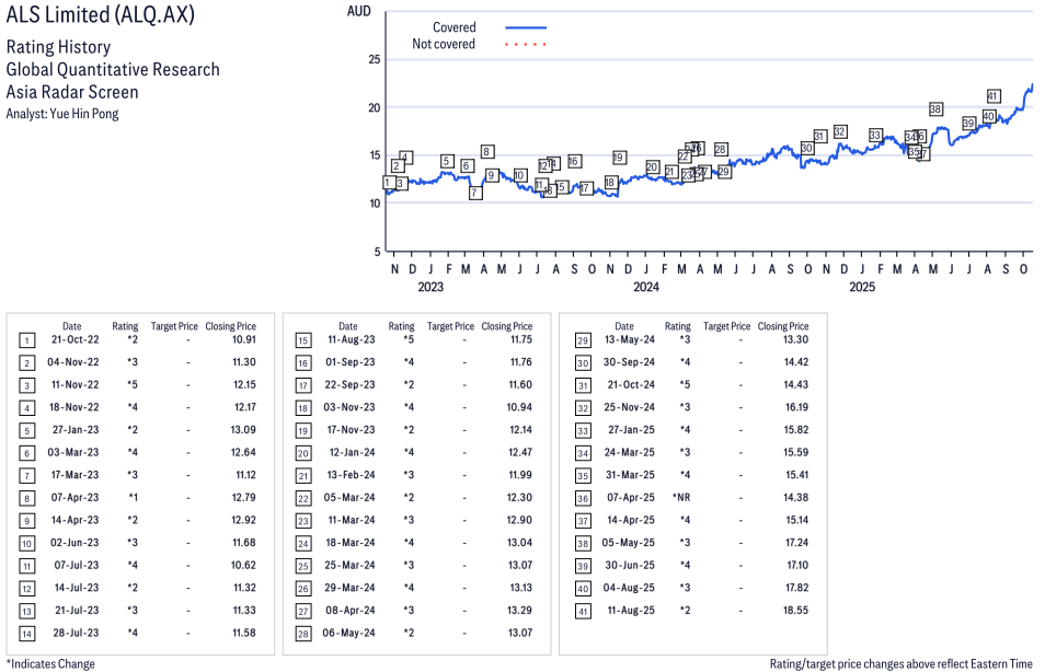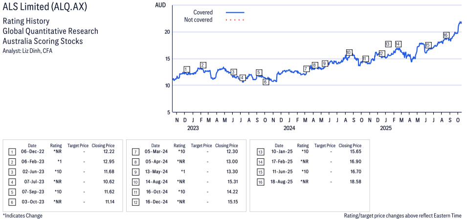 ALS Limited ( ALQ.AX ) Disclosure / Price Chart(s) / Valuation & Risk