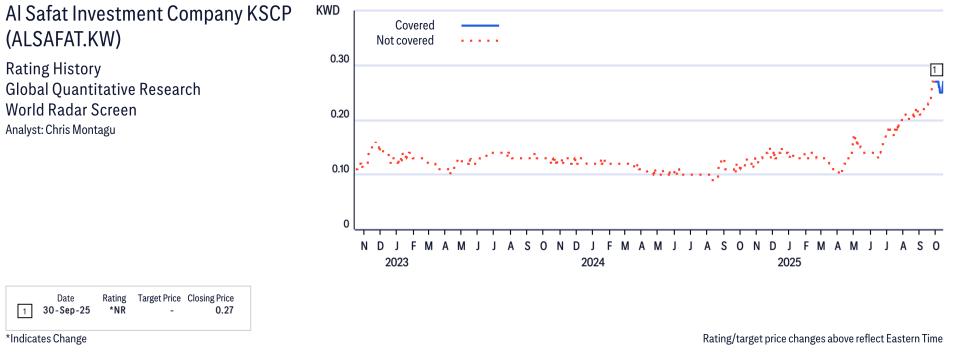 Al Safat Investment Company KSCP ( ALSAFAT.KW ) Disclosure / Price Chart(s)