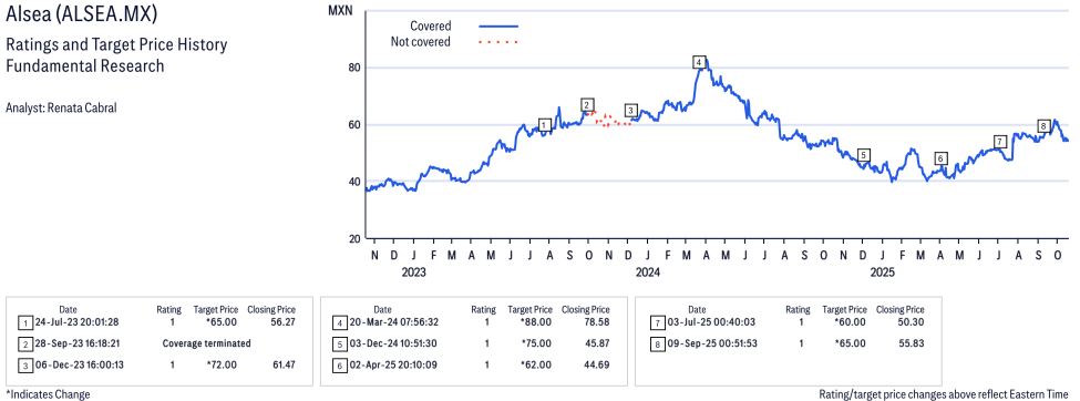 Alsea ( ALSEA.MX ) Disclosure / Price Chart(s) / Valuation & Risk